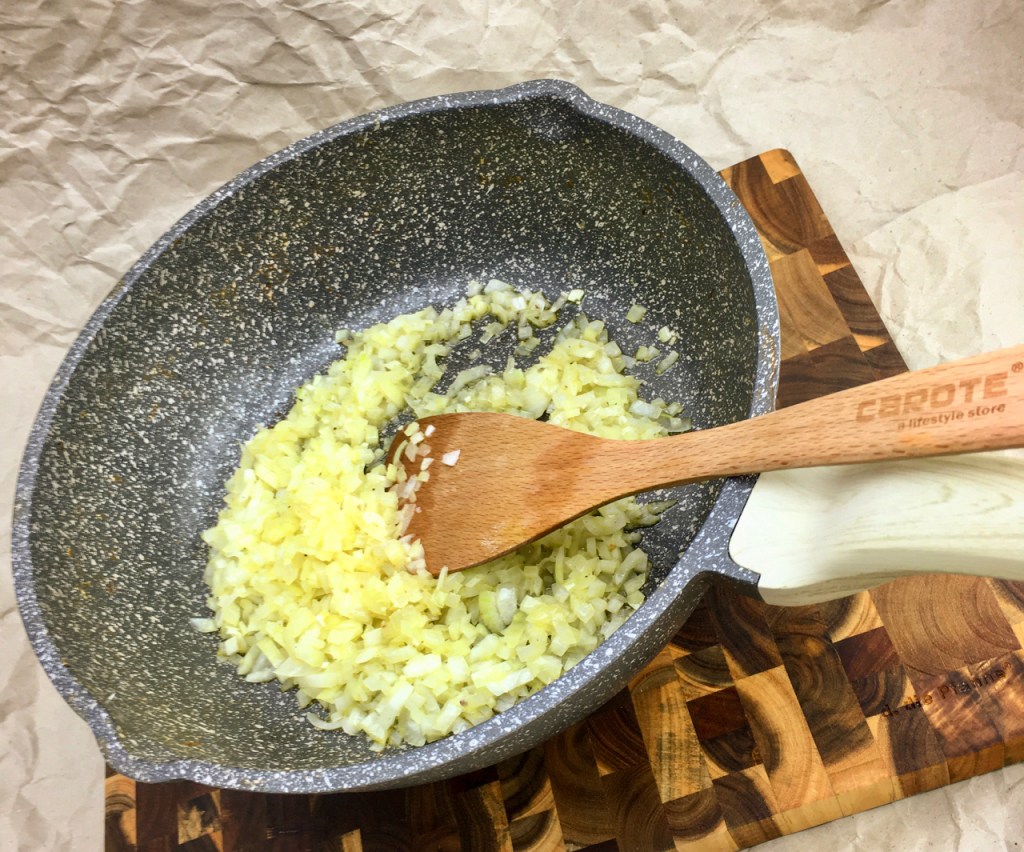 3 Zwiebeln und 1 Knoblauchzehe, geschält und fein gewürfelt