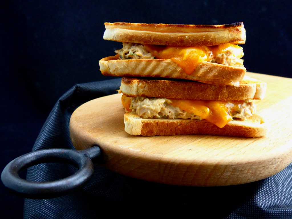 4 Scheiben Weißbrot toasten, dünn mit etwas Mayonnaise bestreichen und auf ein Backblech setzen. Thunfischsalat auf den Toastscheiben verteilen und je eine Scheibe Cheddar drauf legen. Für ca. 3-5 Minuten in den Backofen geben bis der Käse leicht geschmolzen ist.